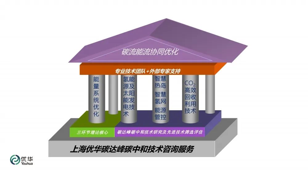 上海优华基于20年丰富而卓有成效的节能降碳技术与经验,进一步筛选评估和应用适用于石化企业的低碳工艺技术、新能源应用技术和二氧化碳高效回收利用技术,能够为企业提供全面系统的碳优化咨询服务。