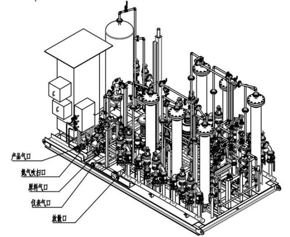 该项目采用上海优华公司的成套撬装旋转阀PSA于2021年实施,提纯系统的整体占地长*宽为4.8*2.5米。